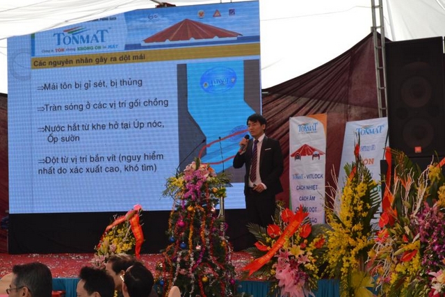 Right after the inauguration ceremony and solemn seminar, Viet Faith Investment and Technology Development Joint Stock Company, FUJITON Color Coated Steel Joint Stock Company, FUJITON Trading Co., Ltd continued to organize the "TONMAT" Workshop. -VITLOCK insulation, sound insulation, anti-leakage, anti-storm and FUJITON - Japan's leading steel sheet in Vietnam. This seminar is an opportunity for Vietrust JSC to introduce to distributors, agents, design consultants, investors... in Thai Binh province and neighboring provinces about TONMAT roofing products - VITLOCK with 4 functions in one product: heat insulation, soundproofing, anti-leakage, anti-storm helps people "Forget about leaks, no more fear of storms".
