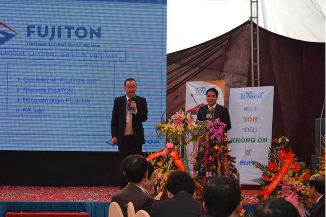 Mr. Ken Yoshioka - Chairman of the Board of Directors and General Director of FUJITON Trading Co., Ltd., the company in charge of FUJITON corrugated iron business - a brand of galvanized steel products, was also present at the ceremony. Japanese quality color with the slogan "Top Japanese in Vietnam". FUJITON wishes to join hands with TONMAT to bring Japanese quality products to consumers at Vietnamese prices through the FUJITON Color Coated Steel Distribution Warehouse in the area, which is TONMAT Thai Binh factory.